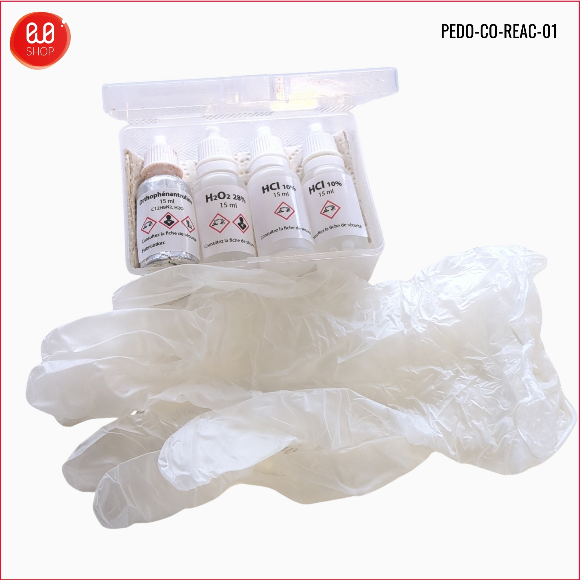 Pour réaliser les tests d’effervescence aux carbonates (HCl), l’identification de concrétions ferro-manganiques (H2O2) et le diagnostic in situ du fer réduit (Orthophénantroline).